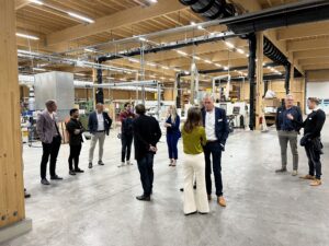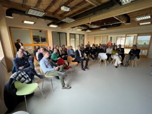 De middag werd afgesloten met een boeiende rondleiding door het pand van RPP door directeur Emmelien Regeling. Het pand is vrijwel volledig circulair gebouwd met onderdelen uit andere gebouwen zoals een oud Shell station, en is energieneutraal door het gebruik van restwarmte uit de productie en opslag in de naastgelegen Dedemsvaart. Ook zijn (uiteraard) allerlei innovatieve circulaire kunststofoplossingen toegepast, waaronder een cementloze bedrijfsvloer, wanden en gevelplaten. Het heeft vader en dochter Regeling veel inspanning en hoofdbrekens gekost, maar ze kunnen trots zijn op dit prachtige resultaat, waarbij duurzaam en circulair ondernemen het uitgangspunt was.